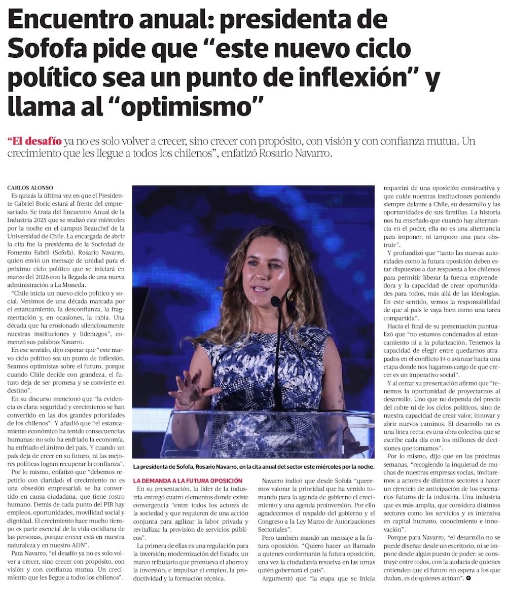 Sofofa: “El crecimiento no es una obsesión empresarial; se ha convertido en causa ciudadana” - (El Mercurio de Santiago)