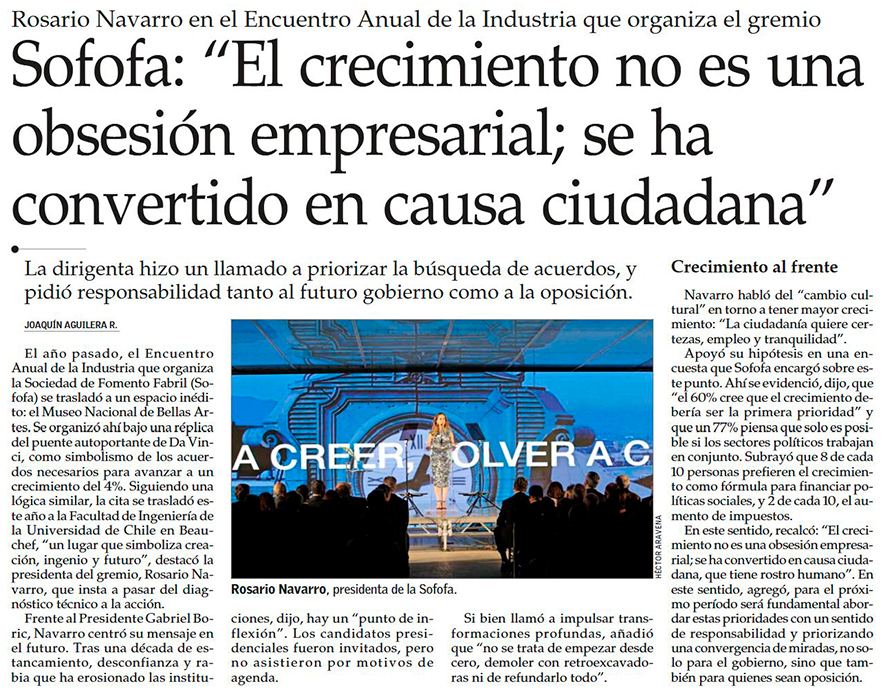 Encuentro anual: presidenta de Sofofa pide que “este nuevo ciclo político sea un punto de inflexión” y llama al “optimismo” - (Pulso)