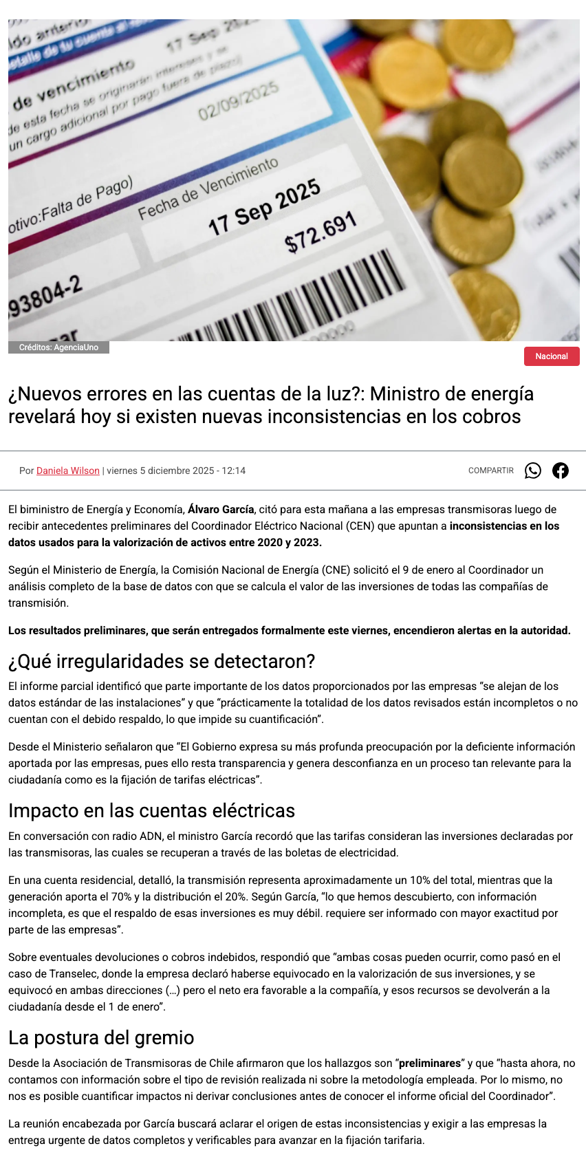 Energía Acorrala a las Transmisoras: Detectan Datos Débiles que Podrían Alterar lo que Pagamos en la Luz - (vilasradio.cl)