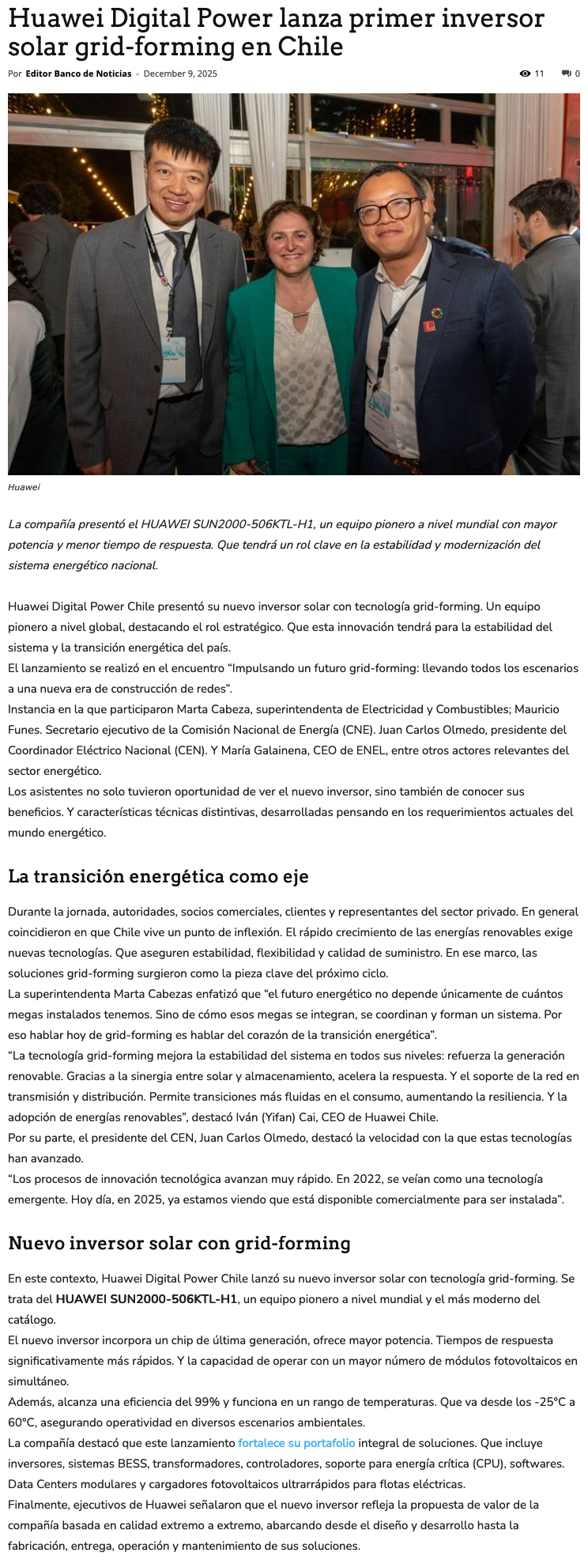 Huawei Digital Power lanza primer inversor solar grid- forming en Chile - (portalinnova.cl)