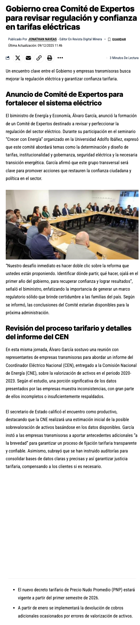 Biministro García anuncia Comité de Expertos para proponer mejoras a la regulación eléctrica y se reúne con empresas transmisoras - (Estrategia)