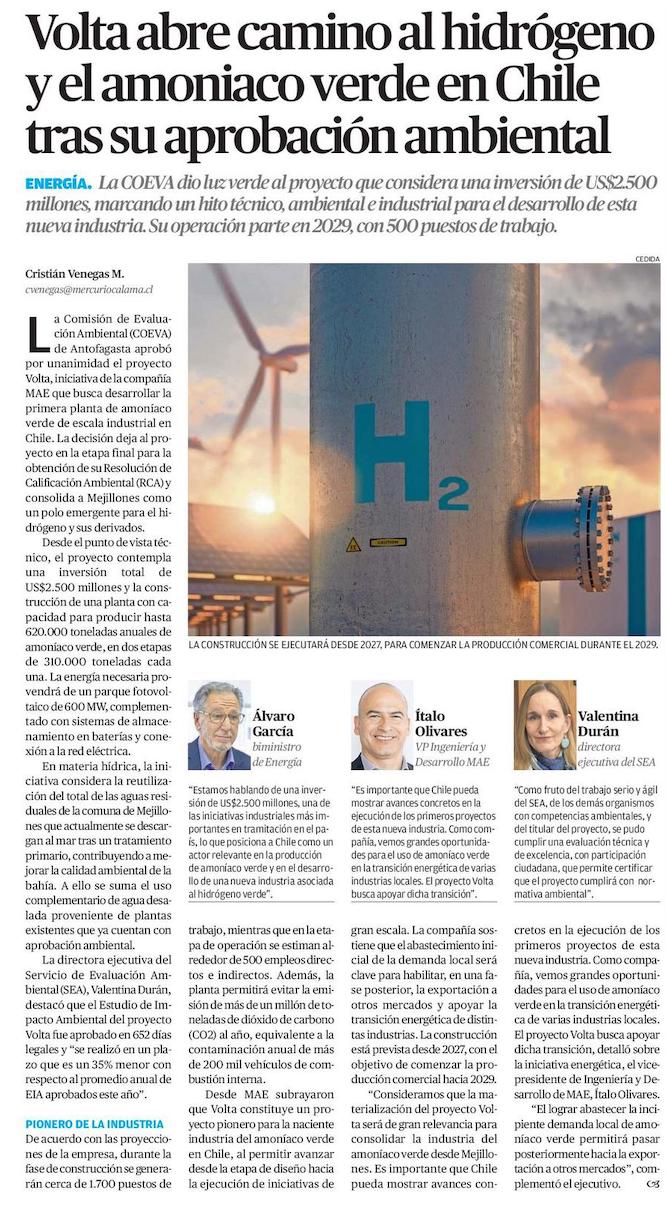 COEVA aprueba megaproyecto de hidrógeno y amoníaco verde - (Estrella de Antofagasta)