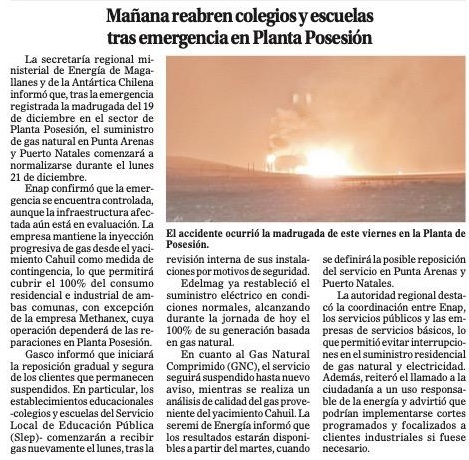 Clases suspendidas, cierre de edificios públicos y detención de Methanex: las medidas adoptadas tras fuga e inflamación en gasoducto de Enap - (La Prensa Austral)