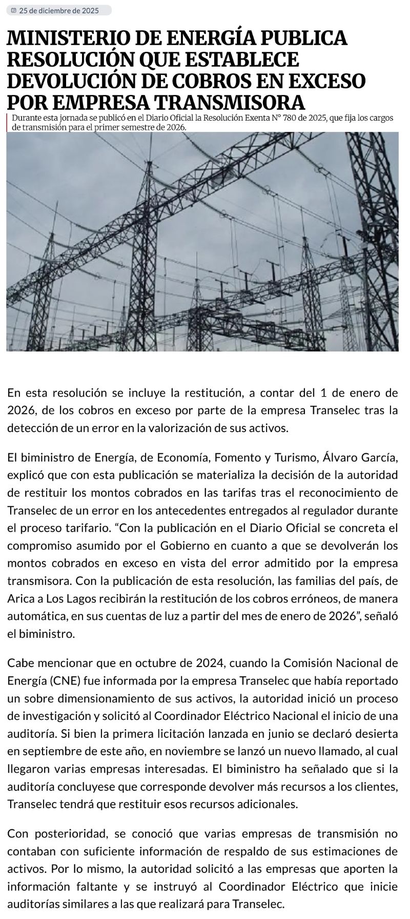 Jueves, 25 de Diciembre de 2025