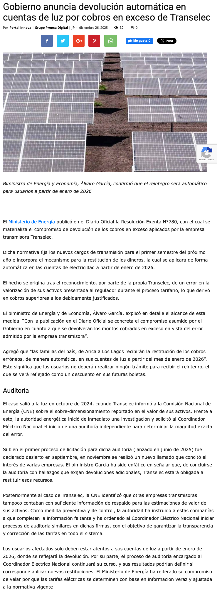 En enero de 2026 comenzará devolución de cargos de transmisión por error regulatorio - (chanarcillo.cl)