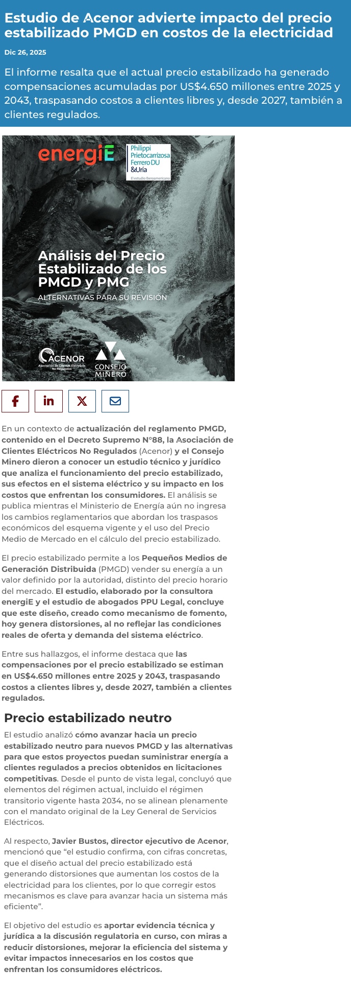 Precio estabilizado para PMGD generará compensaciones acumuladas por US$4.650 millones entre 2025 y 2043 - (electromineria.cl)