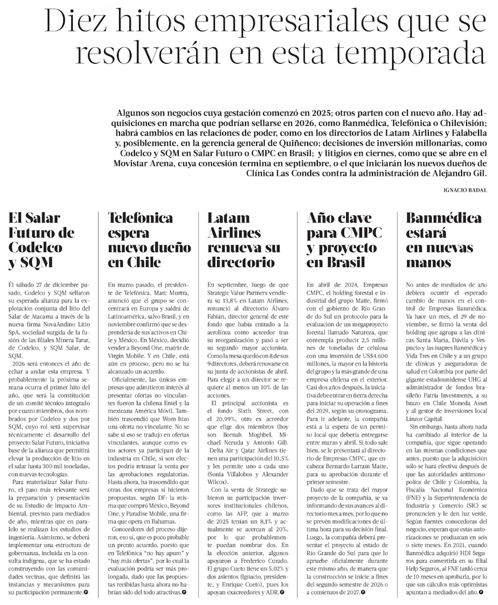 10 negocios y los hitos que marcarán el año - (El Mercurio de Santiago)