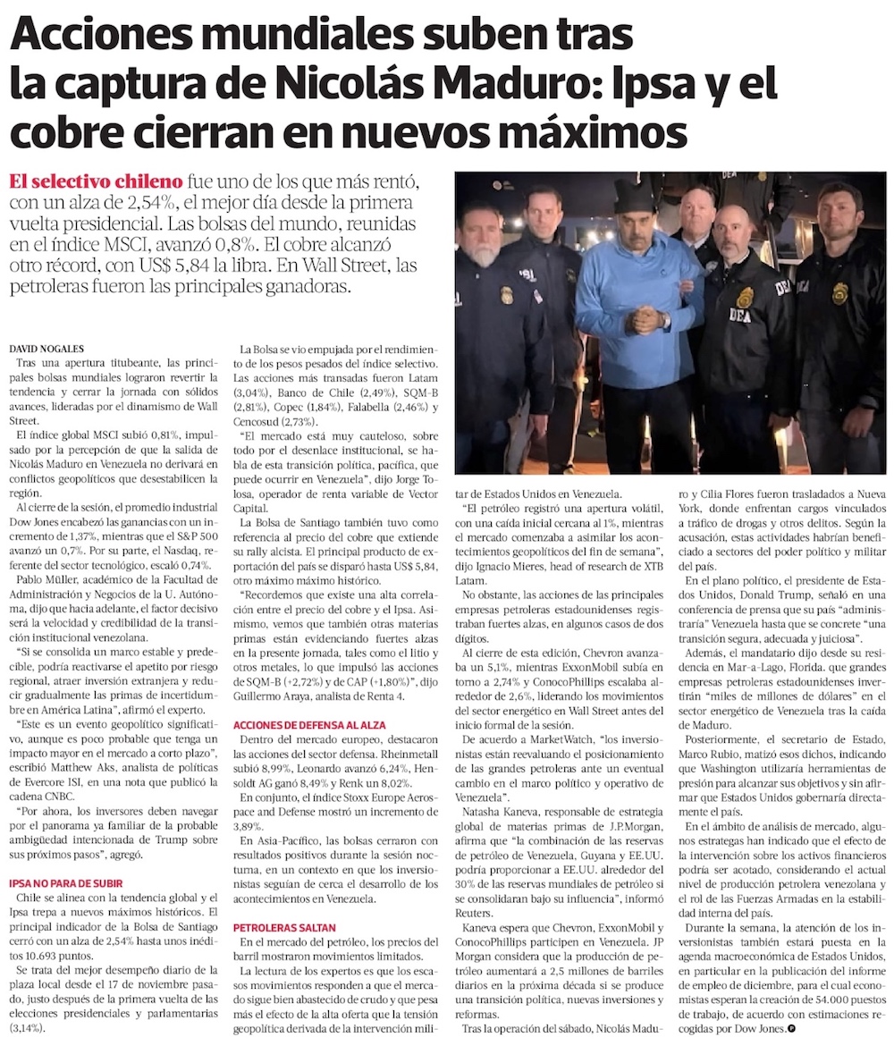 Acciones de empresas petroleras se disparan en el primer día bursátil tras la intervención de EE.UU. en Venezuela - (El Mercurio de Santiago)