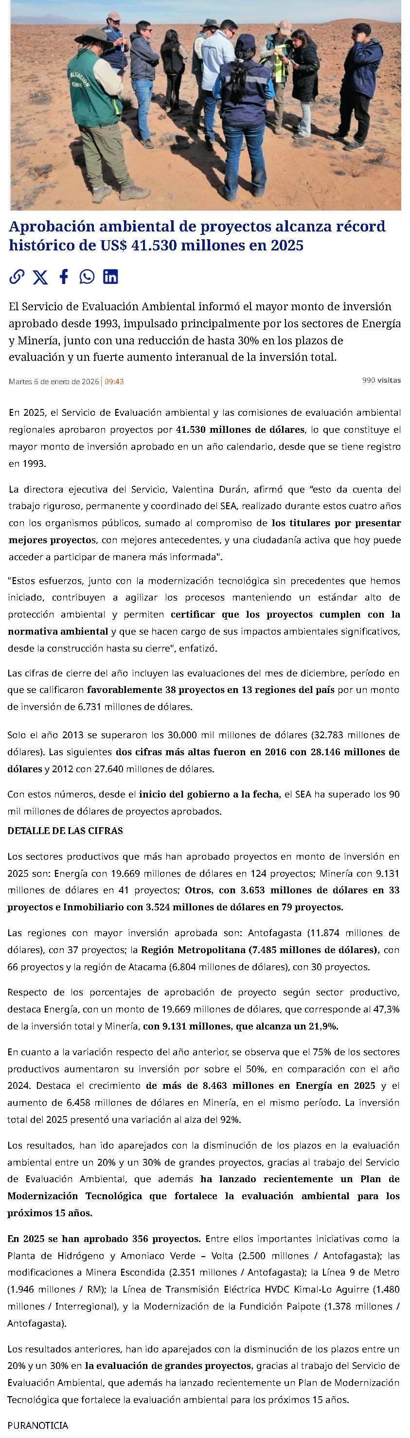 SEA aprueba 38 proyectos en diciembre de 2025 por más de USD$6.731 millones - (portalinnova.cl)