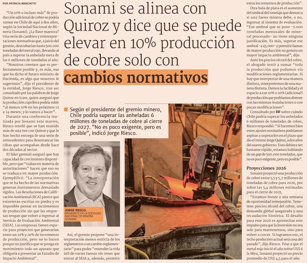 Sonami: “Esperamos que la nueva administración comprenda que la minería es una palanca estratégica para el desarrollo” - (Pulso)
