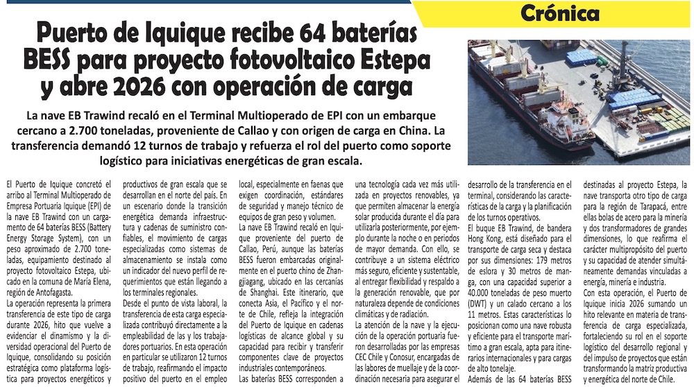 Puerto de Iquique recibe primeras baterías BESS - (Estrella de Iquique)
