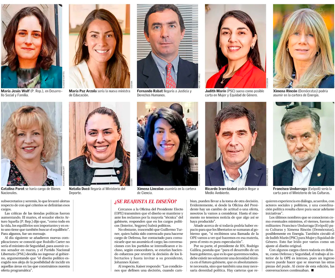 Kast rebaraja gabinete en medio de críticas por exceso de nombres con perfil técnico - (El Mercurio de Santiago)