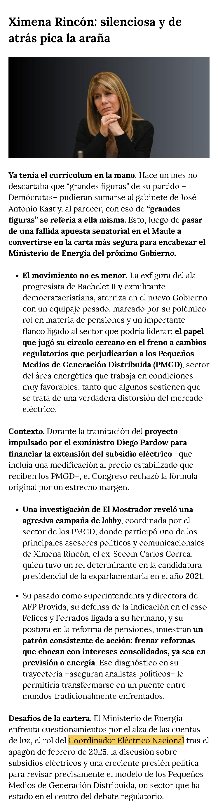Golpe político de Kast: Ximena Rincón se instala como favorita para el Ministerio de Energía - (pagina7.cl)