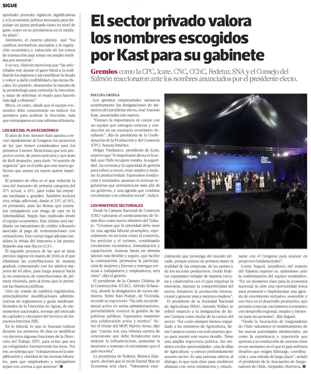 Presidente electo presenta su gabinete para impulsar un “gobierno de emergencia” y llama a la unidad nacional - (El Mercurio de Santiago)