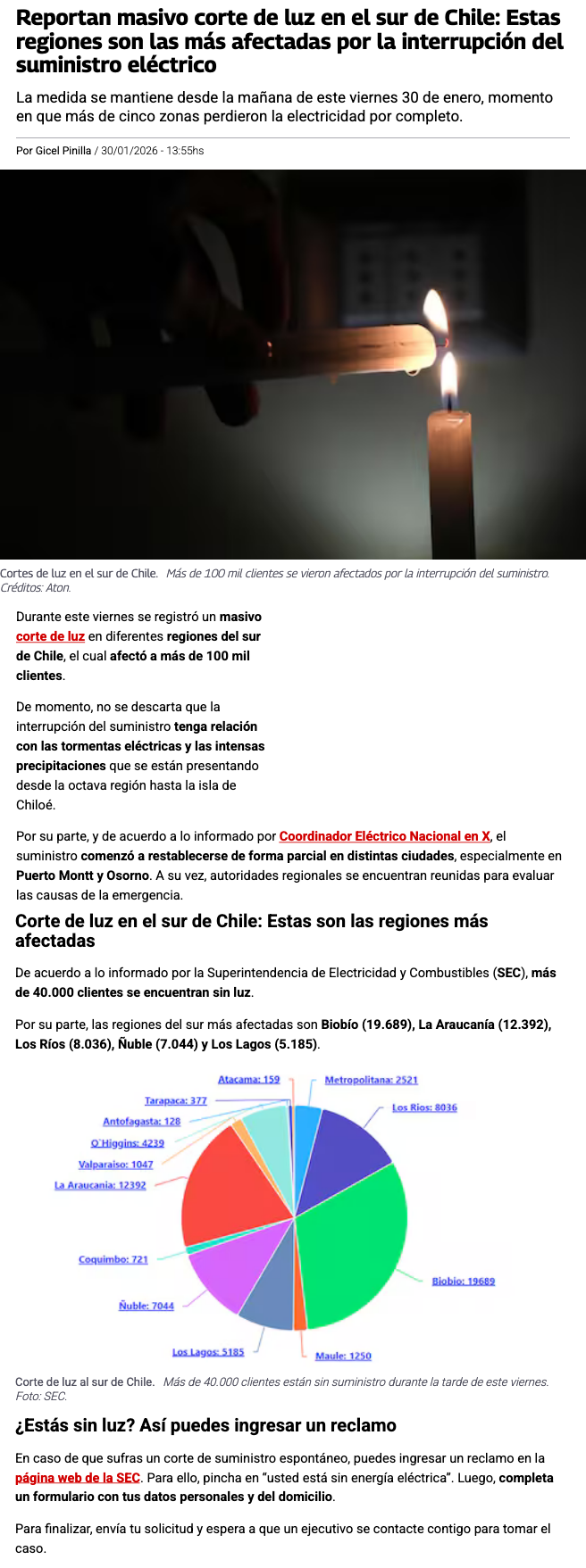 Masivo corte de luz en la zona sur: Miles de clientes afectados entre las regiones de Ñuble y Los Lagos - (meganoticias.cl)