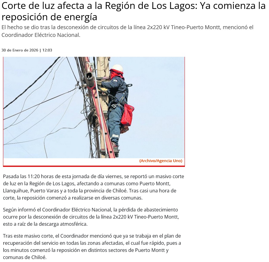 Masivo corte de luz afecta a gran parte de la región de Los Lagos - (atentos.cl)