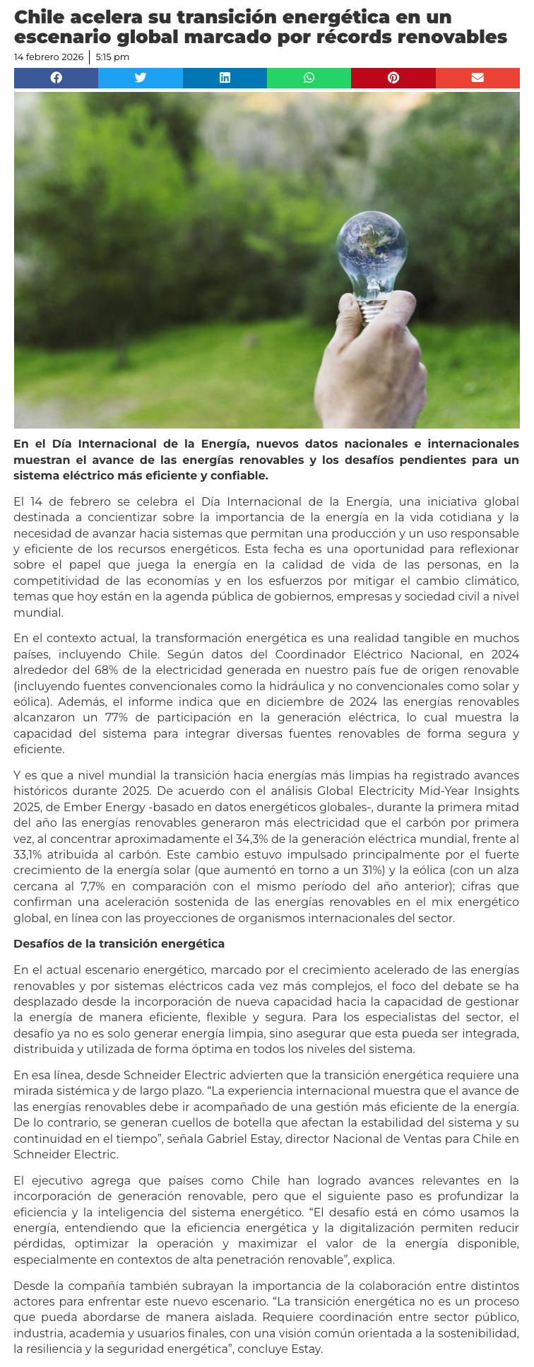 Chile acelera su transición energética en un escenario global marcado por récords renovables - (presslatam.cl)