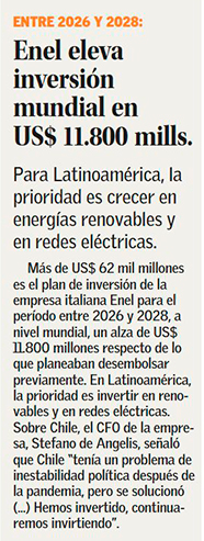 Grupo Enel destaca su presencia en Chile: “La estabilidad política necesaria ha regresado” - (Pulso)