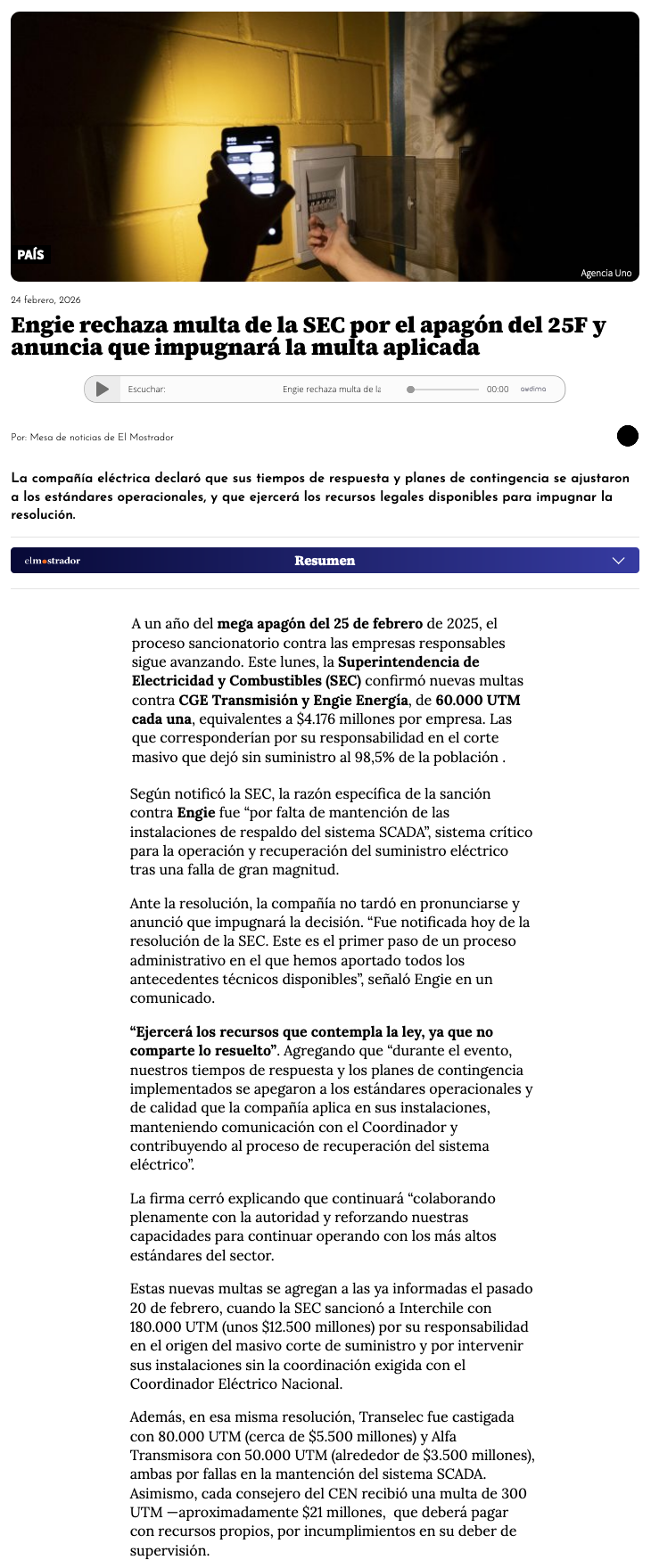 Engie responde tras resolución de la SEC por apagón de febrero de 2025 - (revistaei.cl)