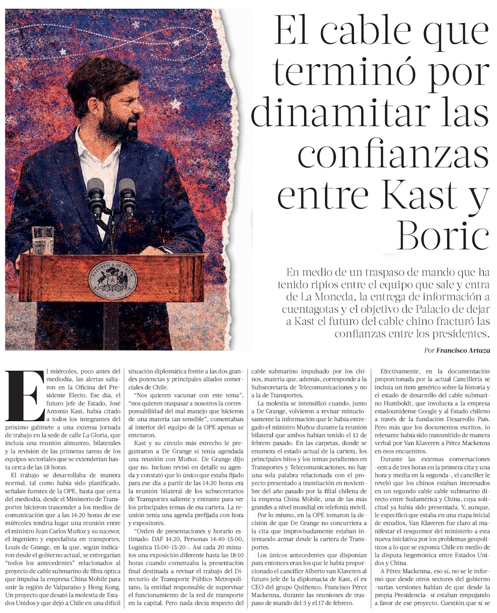 Rivalidad bajo el mar: la geopolítica de los cables submarinos La crisis diplomática vivida alrededor del proyecto Chile-China - (La Tercera)