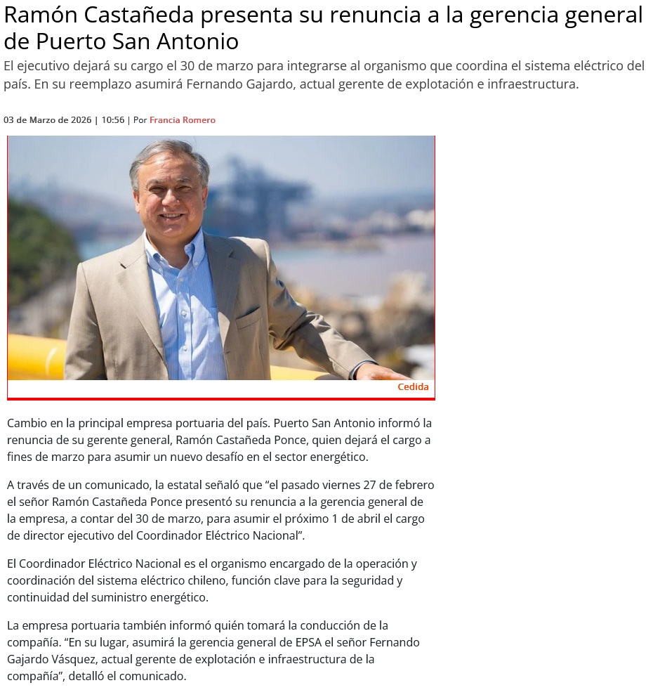 Coordinador Eléctrico designa al gerente general del Puerto San Antonio como nuevo director ejecutivo - (portalinnova.cl)