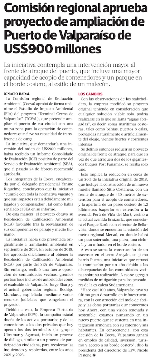 Tras 12 años, ampliación del Puerto de Valparaíso obtiene luz verde ambiental - (Diario Financiero)