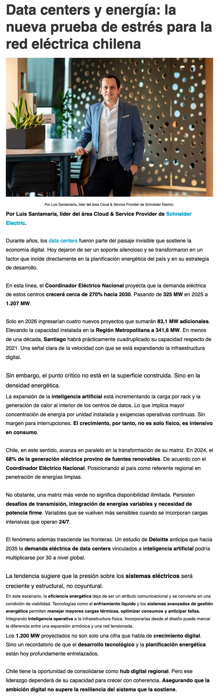 Data centers y energía: la nueva prueba de estrés para la red eléctrica chilena - (mundoenlinea.cl)