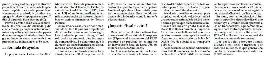 Dupla Alvarado-García supera su primera prueba en la Cámara y logra aprobación de proyecto para paliar alza de combustibles - (El Mercurio de Santiago)