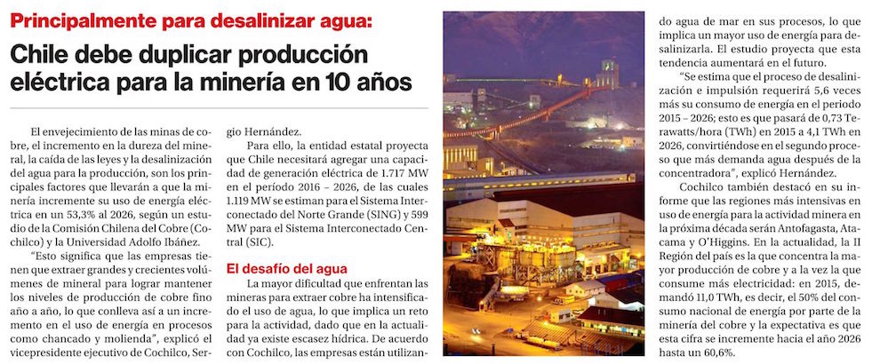 Minería: demanda de energía subiría 53,3% - (El Mercurio de Santiago)