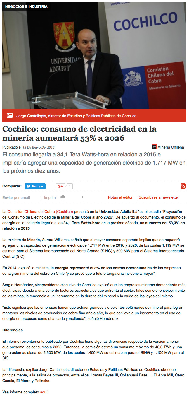 Minería: demanda de energía subiría 53,3% - (El Mercurio de Santiago)