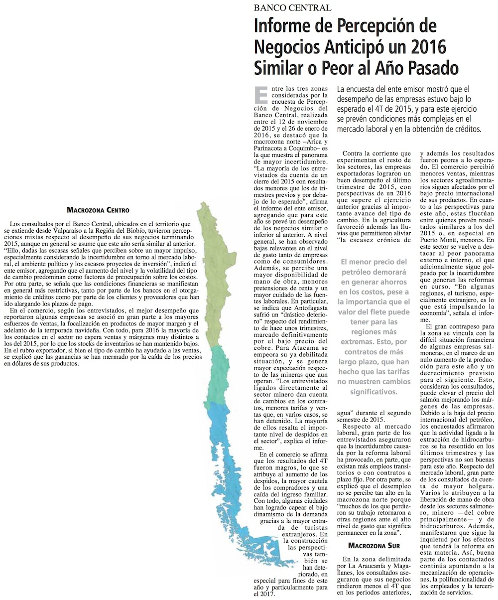 Empresas no ven mejoras: percepción es que este año tendrán resultados similares o peores a 2015 - (El Mostrador)