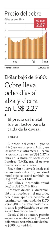 Libra de cobre registra US$2,2689 luego de ocho sesiones al alza - (Estrategia)