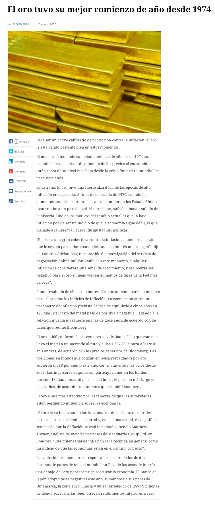 El oro tuvo su mejor comienzo de año desde 1974 - (Pulso)