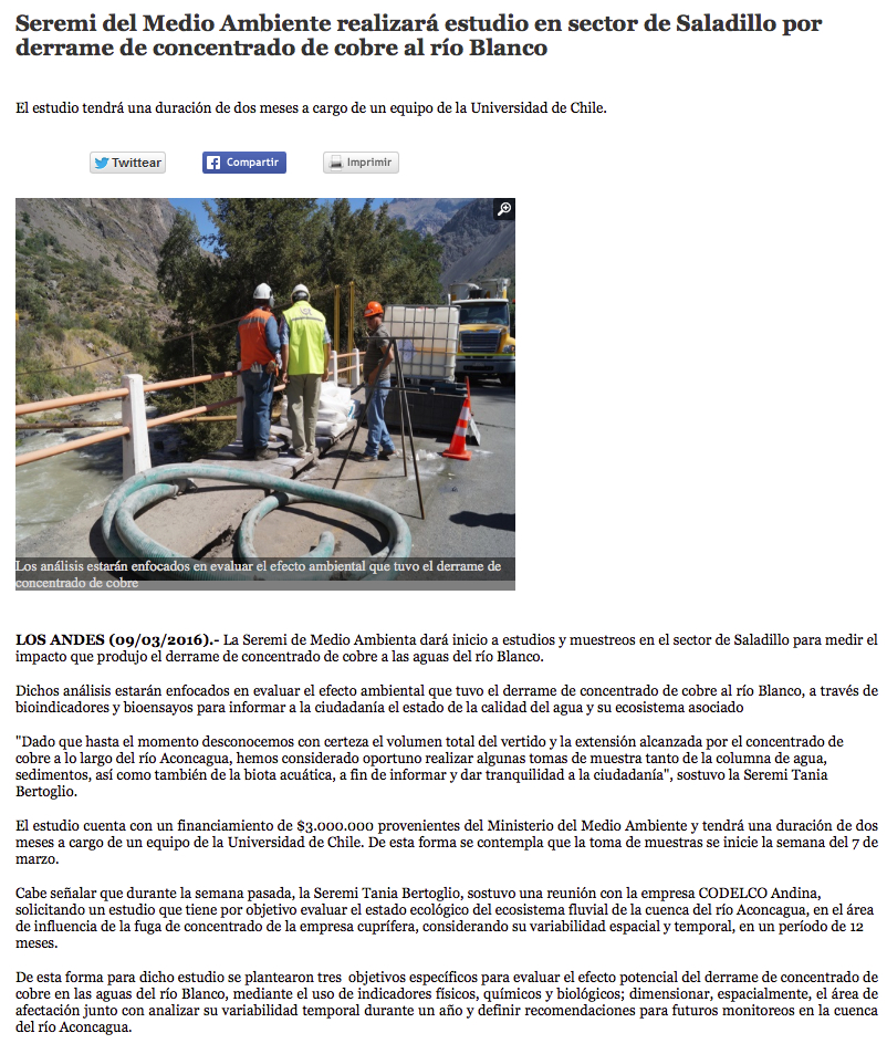 Inician estudio para evaluar daño ambiental en Río Blanco de Los Andes - (elmartutino)