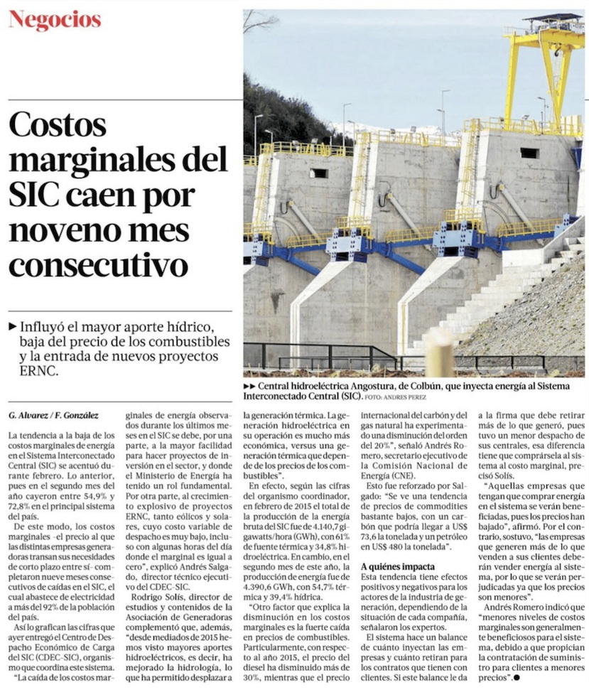 Aporte de centrales renovables en el SIC sube 37% a febrero - (Diario Financiero)