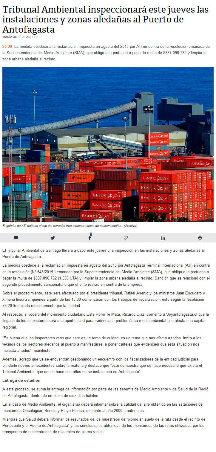 Tribunal Ambiental de Santiago inspecciona contaminación en Antofagasta - (radio.uchile online)