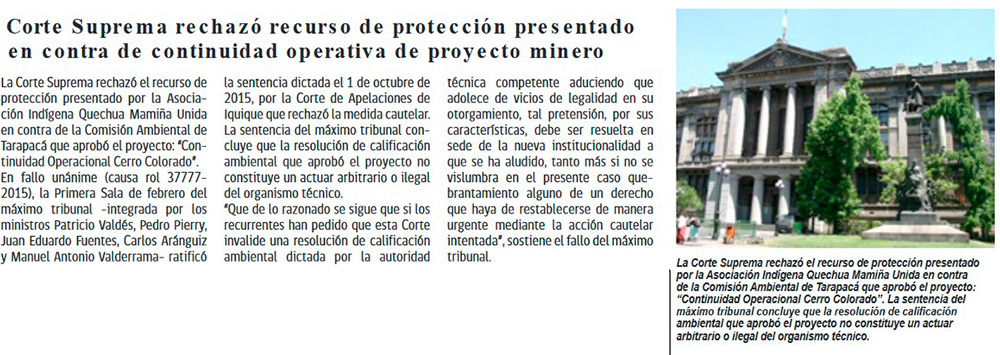 Suprema rechaza recurso de indígenas y da luz verde a proyecto minero en Tarapacá - (biobiochile online)