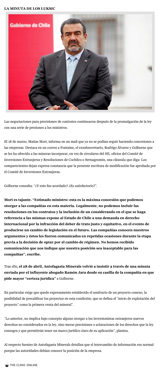 Golborne y negociación de Royalty: “No podíamos hacer nada sin el acuerdo de las empresas mineras” - (The Clinic online)