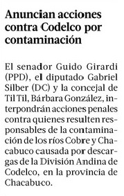 Girardi presentará acciones legales contra División Andina de Codelco - (El Mercurio de Valparaíso)