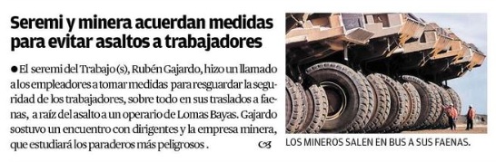 Preocupación por asaltos a mineros en los paraderos - (El Mercurio de Calama)