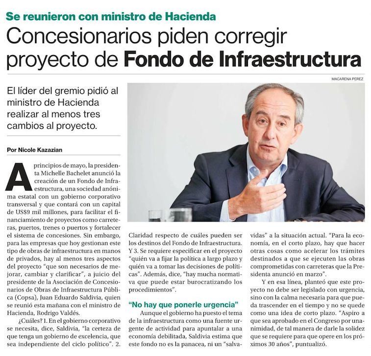 Fondo de Infraestructura estaría operativo en 2017 - (El Mercurio de Santiago)