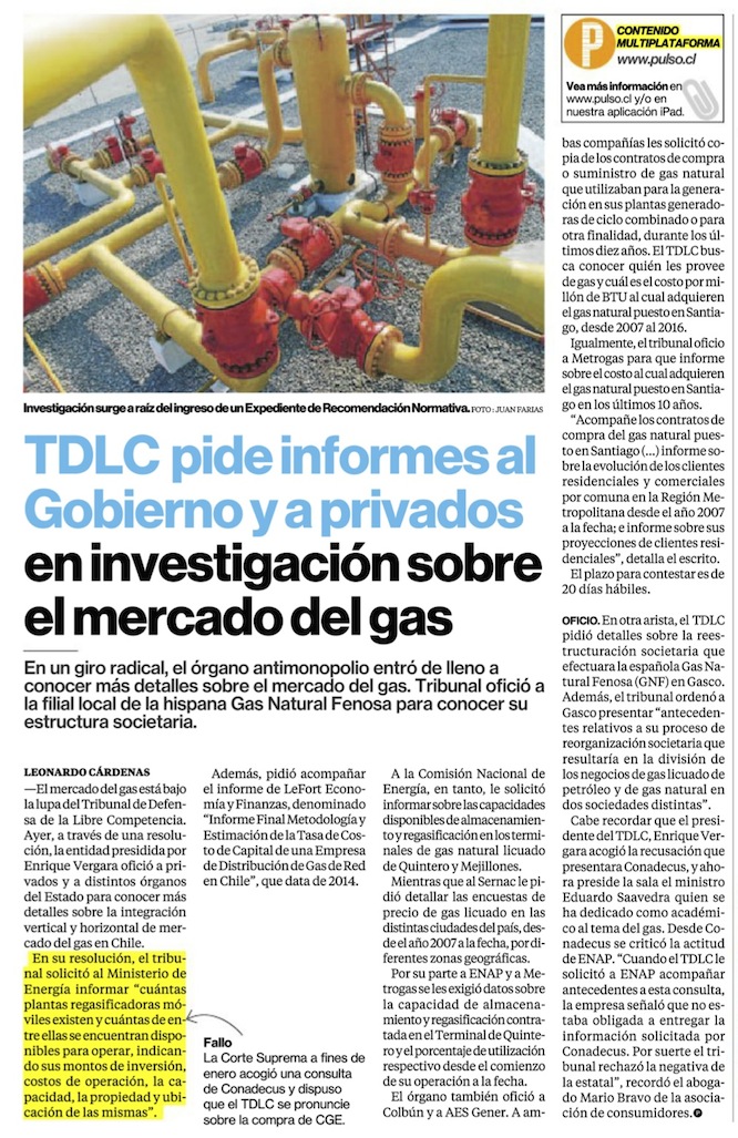 Mercado del gas en la mira: Tribunal de Libre Competencia apunta a la integración vertical y horizontal de la industria - (El Mostrador)