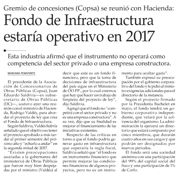 Concesiones piden corregir proyecto de Fondo de Infraestructura - (La Segunda)