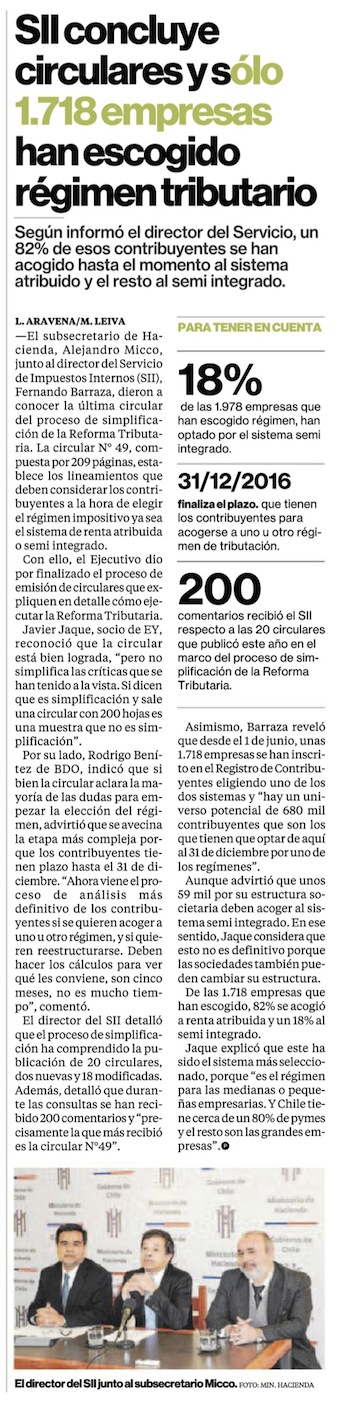 Un total de 1.700 contribuyentes han optado por nuevos sistemas tributarios - (Diario Financiero)