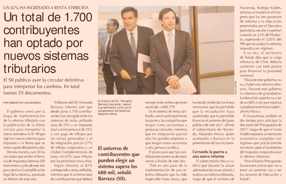 SII concluye circulares y sólo 1.718 empresas han escogido régimen tributario - (Pulso)