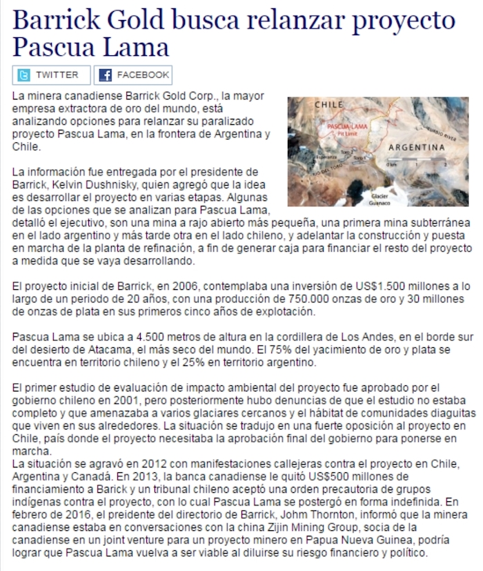 Barrick Gold no se rinde: minera busca relanzar proyecto Pascua Lama - (eldinamo)