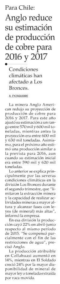 Producción de cobre de Anglo American cae 22% en segundo trimestre - (Estrategia)