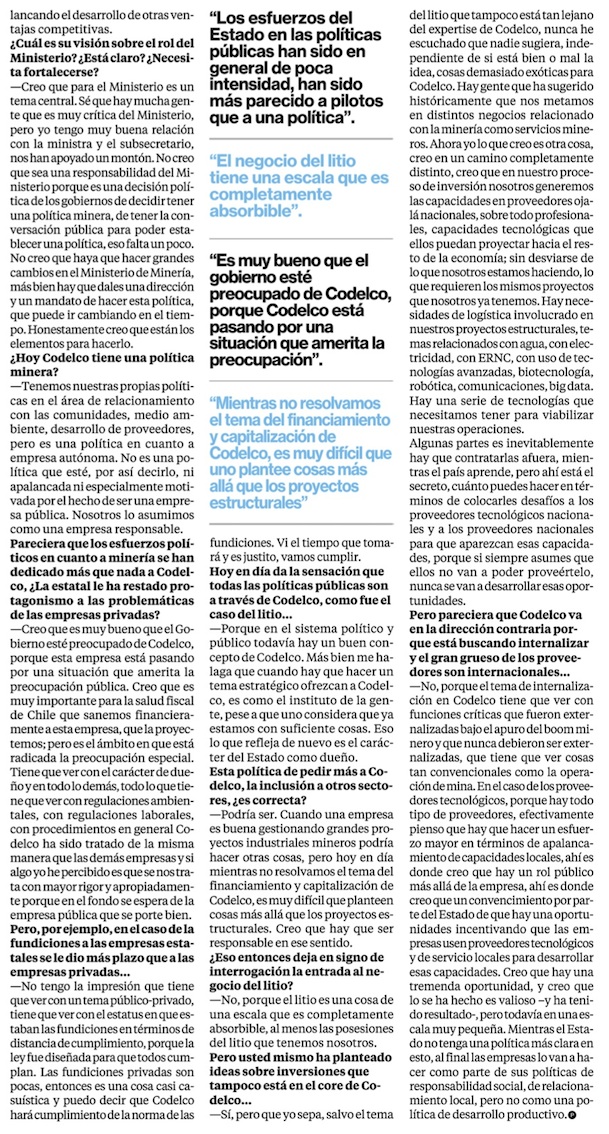 “Es indispensable crear un mecanismo de financiamiento permanente de Codelco” - (La Tercera)