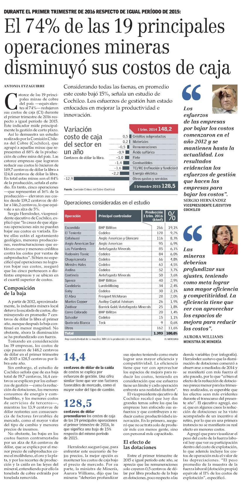 Mineras alcanzan peak de ahorros por planes de acción impulsados tras fin de superciclo - (Diario Financiero)