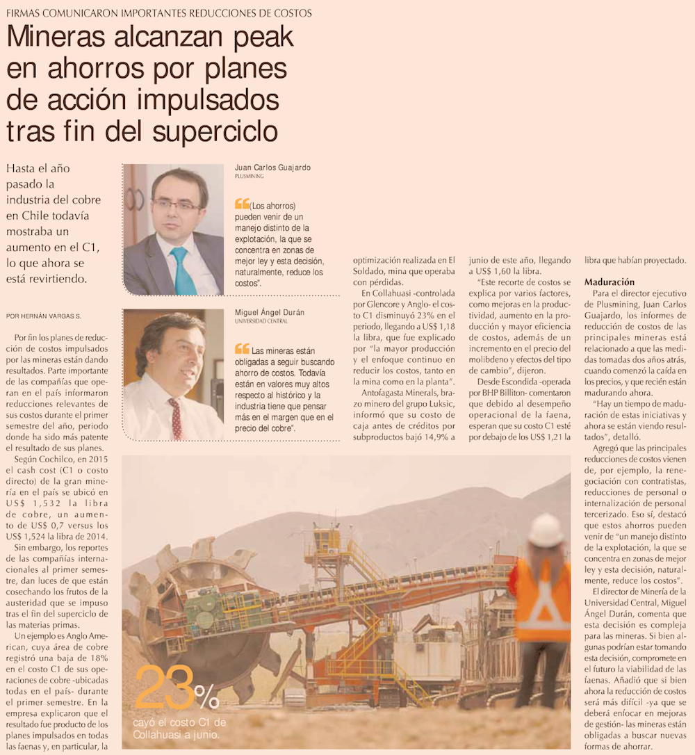 El 74% de las 19 principales operaciones mineras disminuyó sus costos de caja - (El Mercurio de Santiago)